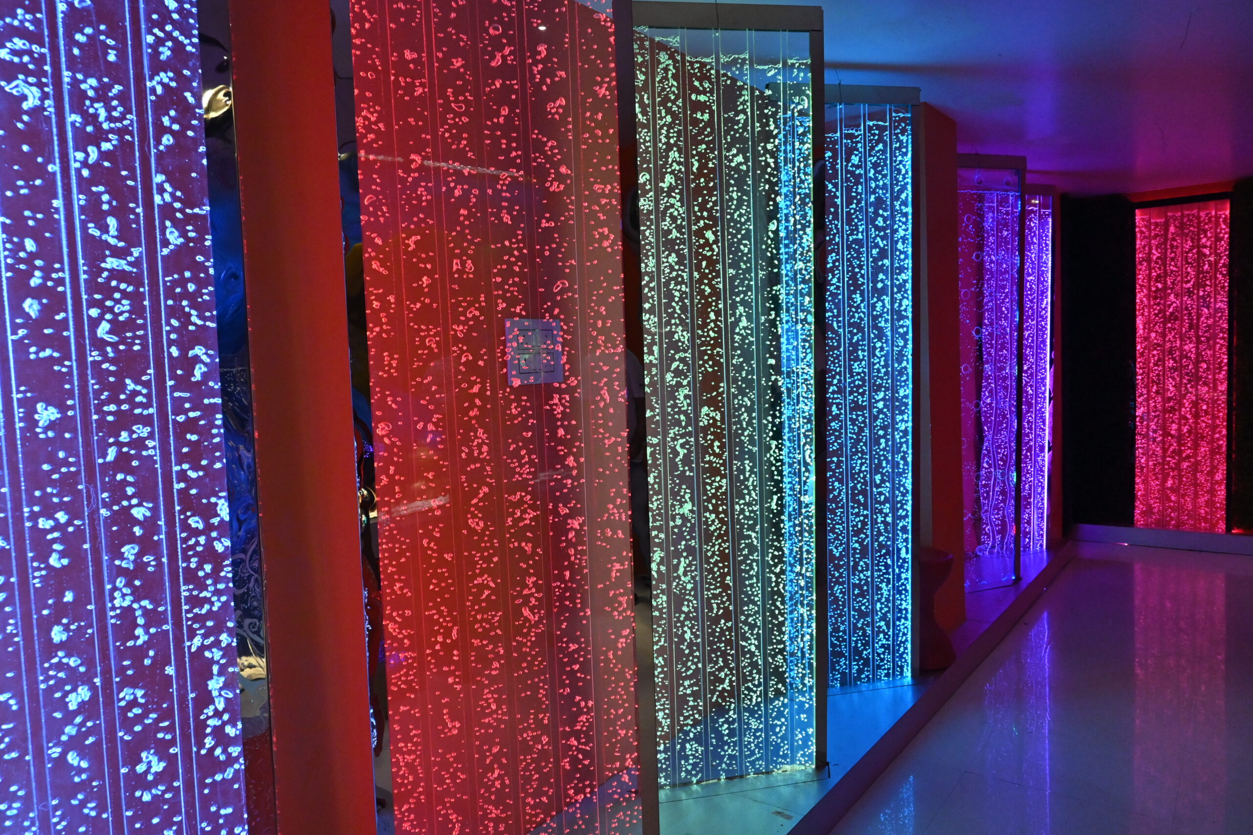 Decorative bubble walls with color-changing LEDs—perfect for modern interiors, spas, salons, and commercial décor.